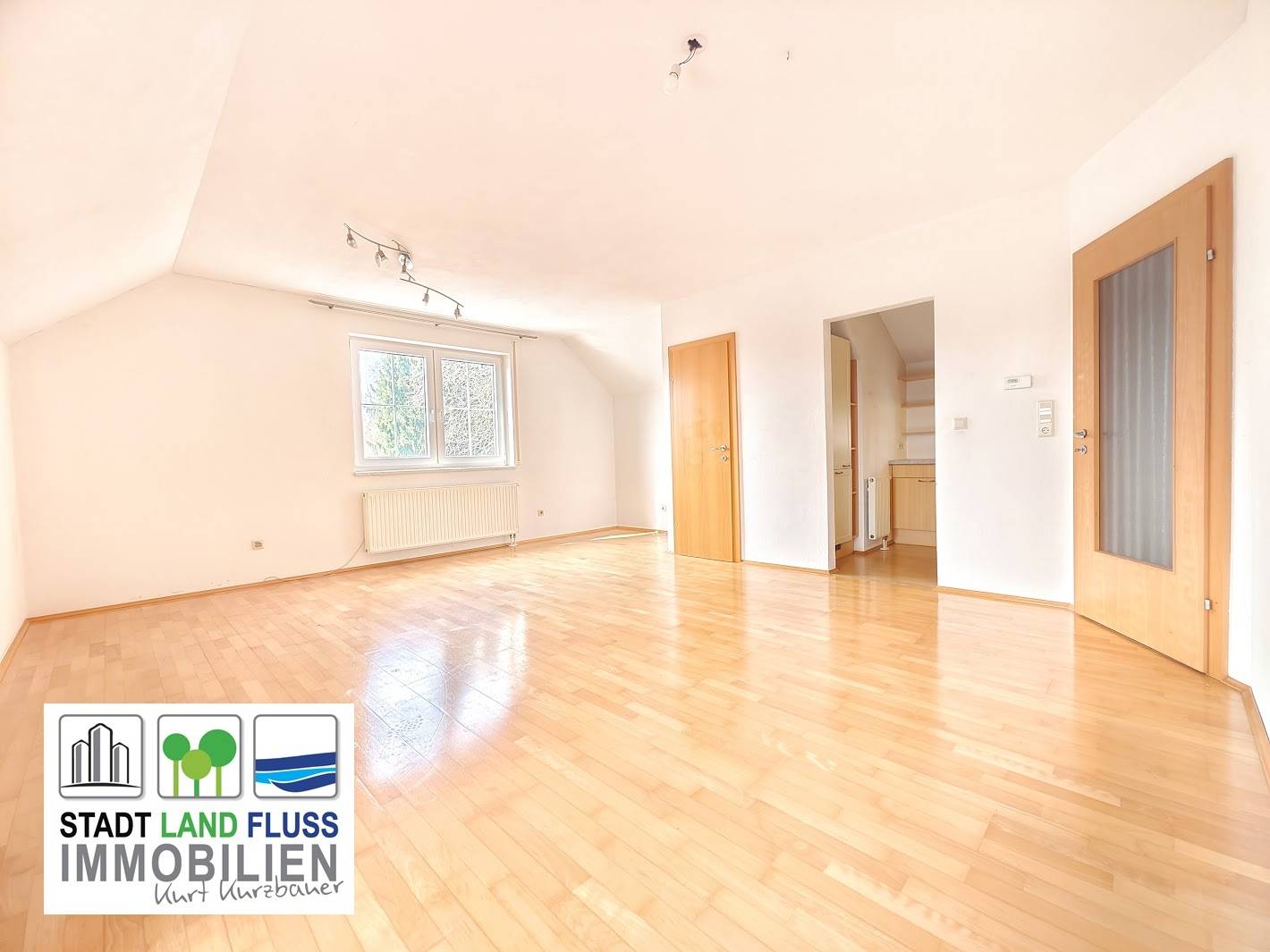 Der großzügige Wohn- und Essbereich überzeugt durch seine Helligkeit und schafft eine angenehme Wohnatmosphäre. Ergänzt wird das Raumangebot durch ein kleines Schlafzimmer, eine praktische Kochnische, einen Abstellraum sowie ein Badezimmer und ein separates WC.