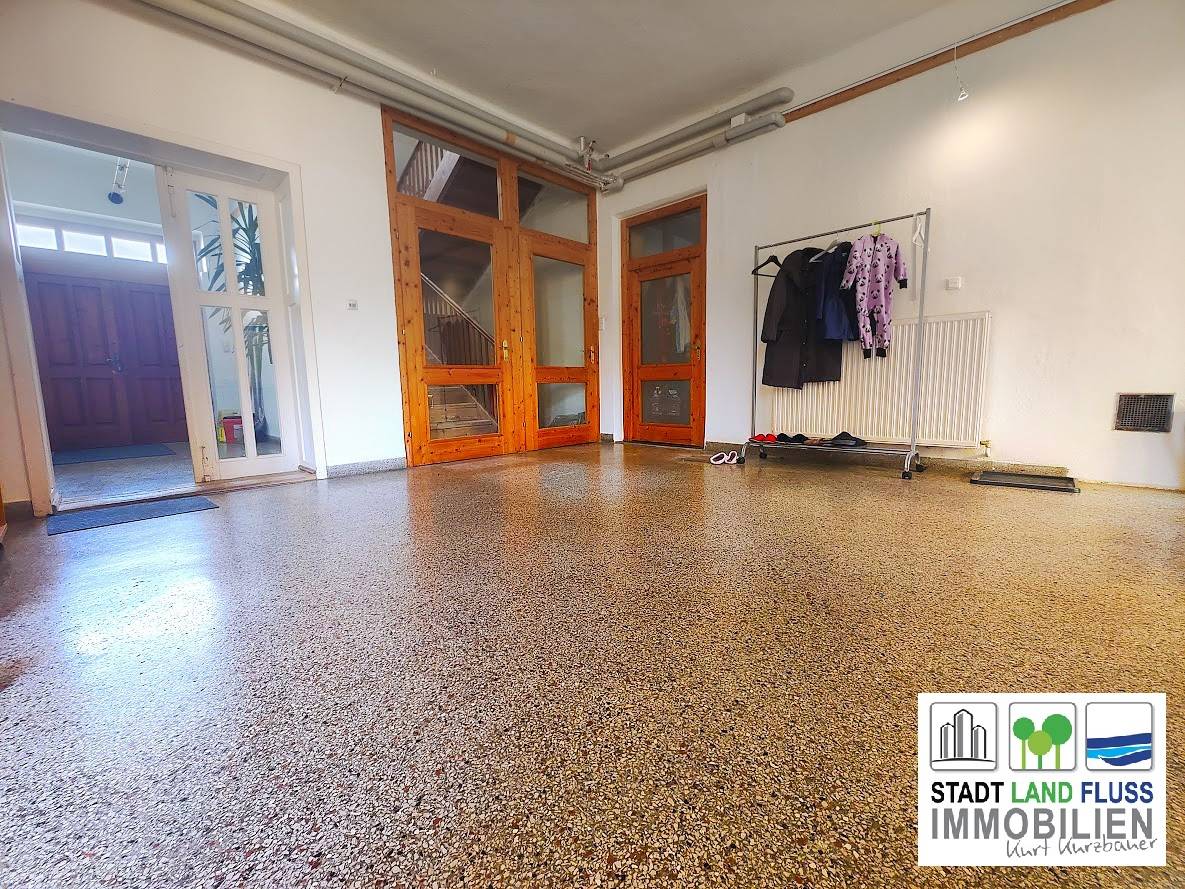 Die originalen, pflegeleichten Terrazzoböden unterstreichen den authentischen Charakter und verleihen den Räumen eine zeitlose Eleganz.