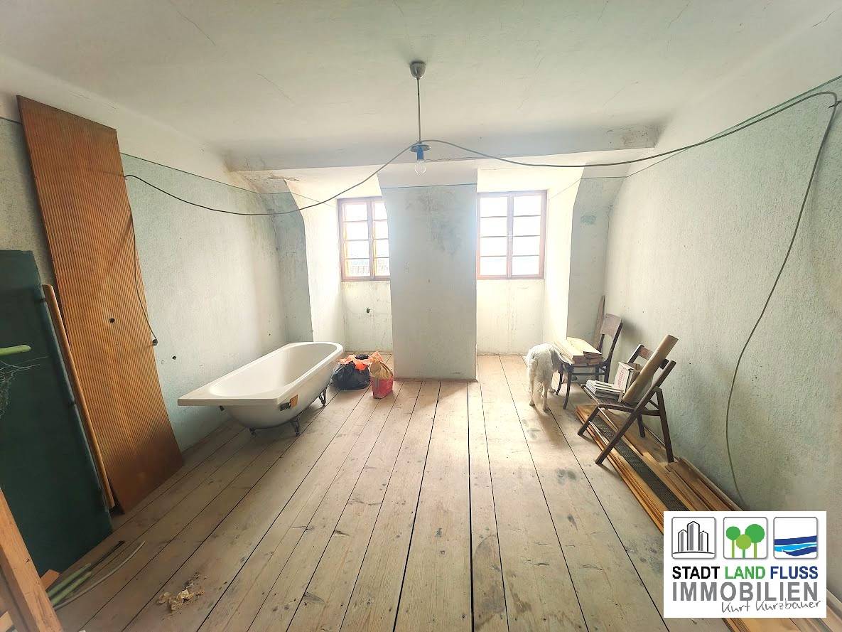 Das Obergeschoss ist derzeit sanierungsbedürftig – bietet jedoch genau darin eine große Chance: