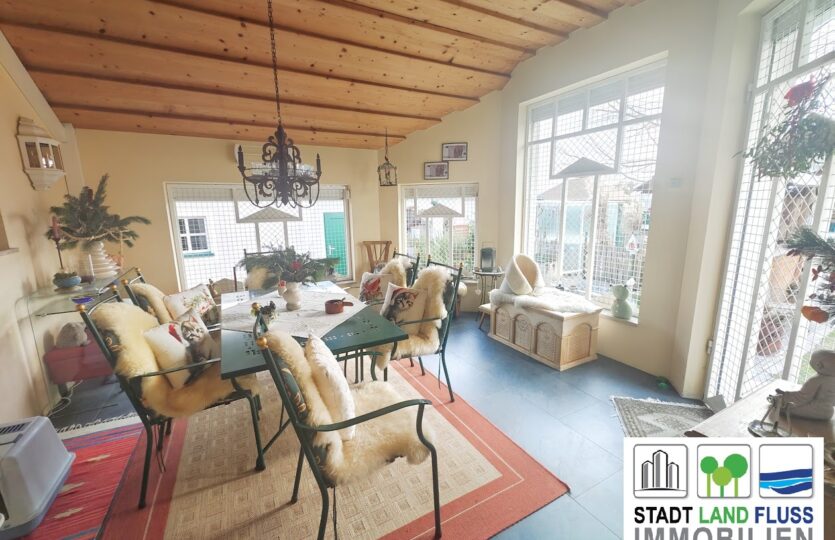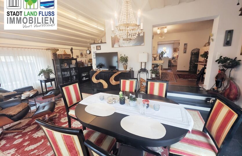 Die bestehende Möblierung sowie zahlreiche Einrichtungs- und Gebrauchsgegenstände verbleiben im Haus und ermöglichen einen sofortigen Einzug ohne zusätzlichen Aufwand. Einzelne persönliche Gegenstände sind vom Verkauf ausgenommen. – inklusive Waschmaschine, Trockner, Rasenmäher, Gartengeräten und vielem, vielem mehr.