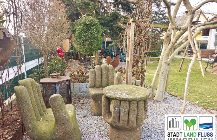 Ein liebevoll gestalteter Garten lädt zum Entspannen ein. Weitere Highlights: Whirlpool im Garten, Hochbeete, Sommerküche, hochwertige Teak-Gartenmöbel und ein Nebengebäude mit Extraraum und Infrarotkabine – Wellness direkt zuhause.