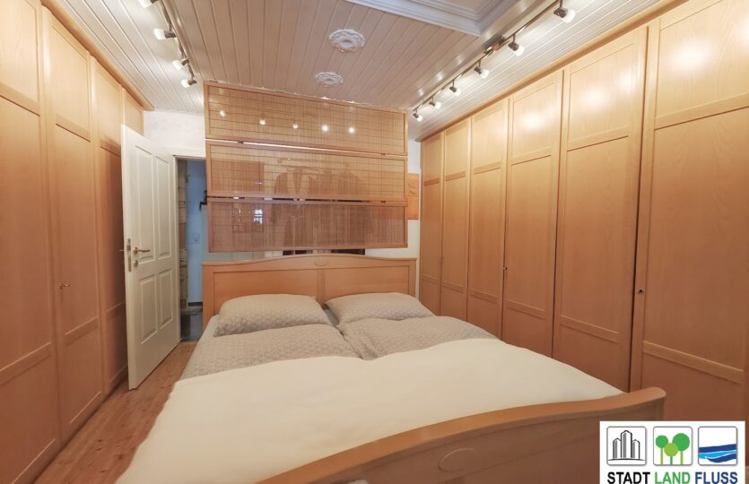 Die Mansarde ist möbliert, die Einrichtung sowie das Badezimmer stammen überwiegend aus den 1980er-Jahren – funktional, gepflegt und ideal für Käufer, die entweder den Retro-Charme schätzen oder den Bereich nach eigenen Vorstellungen modernisieren möchten.