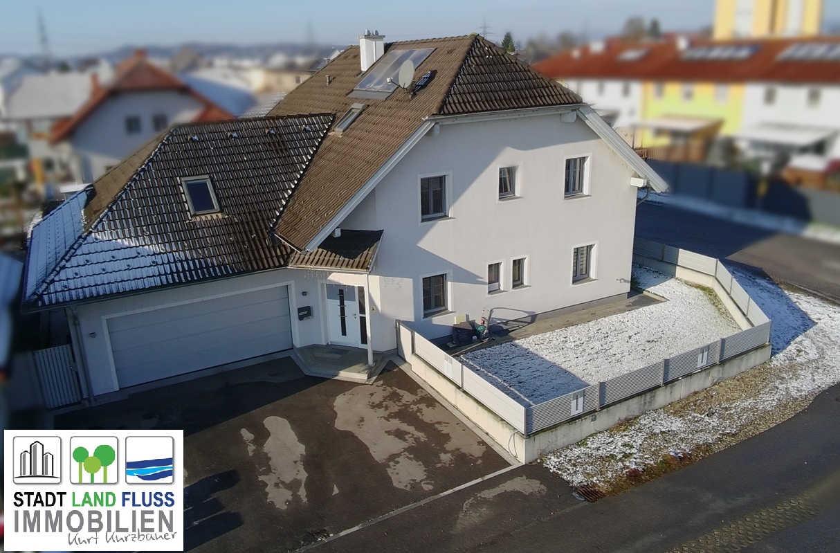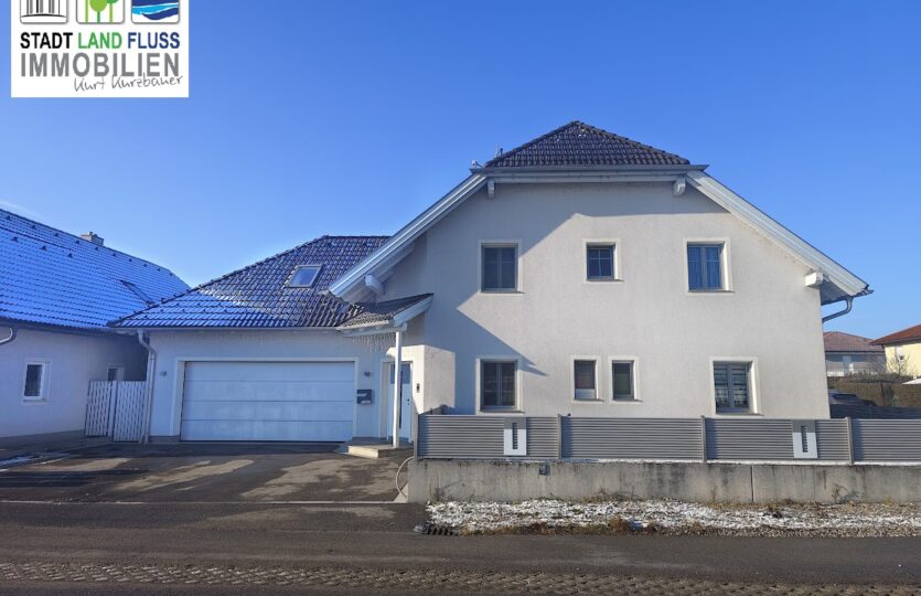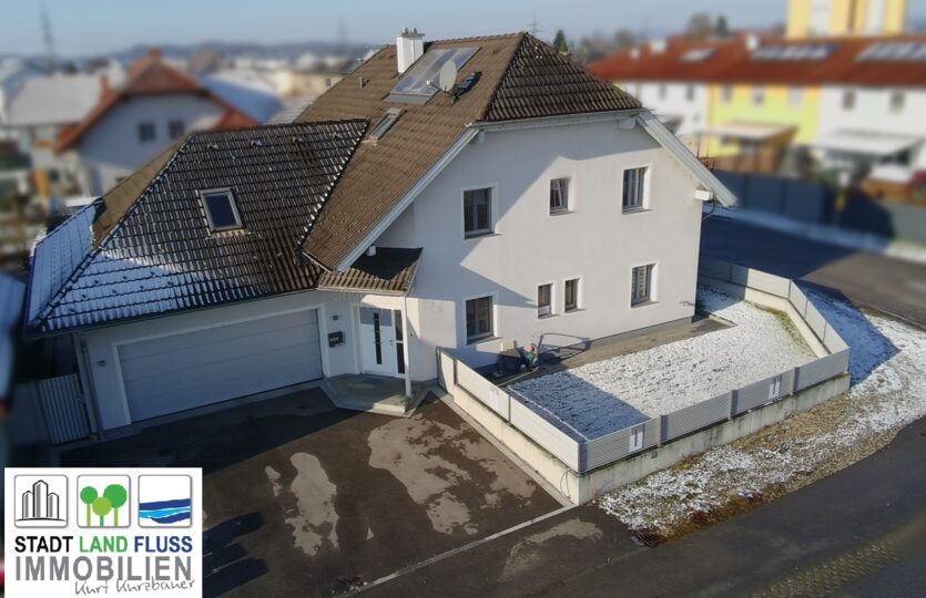 In Asten-Raffelstetten steht dieses hochwertige Einfamilienhaus aus dem Jahr 2002 zum Verkauf. Das Gebäude wurde in solider Ziegelmassivbauweise von Wimberger Bau errichtet, ist voll unterkellert und bietet mit Doppelgarage, großzügigen Wohnräumen und einem Pool im Garten Wohnkomfort auf höchstem Niveau. Das Grundstück umfasst 665 m².Im Erdgeschoss gelangt man durch die Doppelgarage in den Windfang und weiter in die Diele. Von hier öffnet sich der großzügige Wohnbereich mit über 50 m², bestehend aus Wohnzimmer mit Kachelofen, Essbereich und offener Küche. Von der Terrasse aus betritt man den sonnigen Garten mit Pool. Zusätzlich gibt es im Erdgeschoss ein Zimmer, das sich ideal als Gästezimmer, Büro oder Praxisraum eignet, sowie eine Dusche und ein WC.